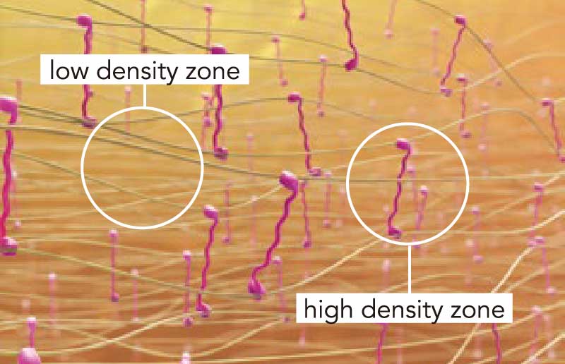 再次加入透明質酸分子鏈會與剩餘的BDDE作第二次的交聯,凝膠在多密度凝聚技術(CPM)下產生